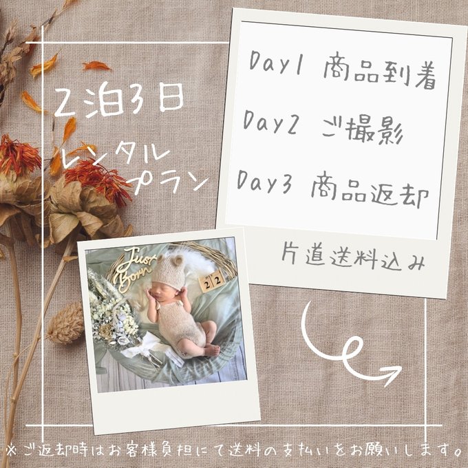 2泊3日のレンタルプランとなっています。①ご希望のセット名②ご希望の日程③お住いの都道府県を下記Line(@622ahhny)でお知らせください。空き状況を確認致します。